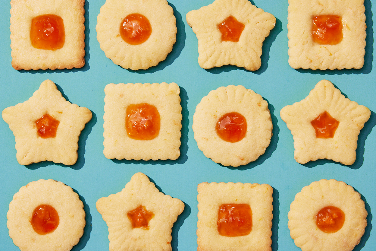Cake flour and olive oil make these thumbprint cookies super-tender; the compelling hints of vanilla and orange come courtesy of our wonderful Fiori di Sicilia flavoring. A jewel of tart jam in the center completes this very pretty picture.