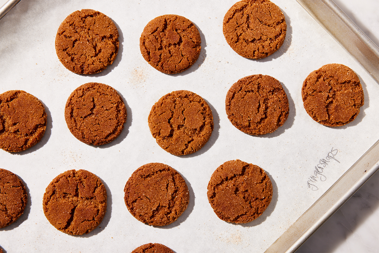 9. Remove the gingersnaps from the oven, and cool right on the pan, or on a rack. Cool completely, then store tightly wrapped, at room temperature.