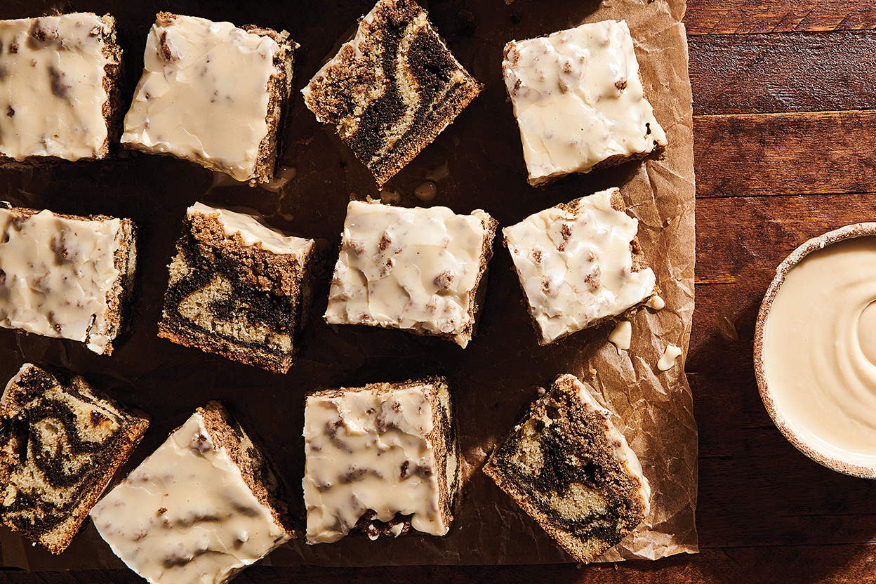 Drizzle thick ribbons of glaze over the entire top of the cake; the goal is to completely cover the top with glaze, encrusting the crumbs with even more coffee flavor. For a sugar-crusted texture, allow the glaze to set before slicing the coffee cake (about 1 hour); serve at room temperature.