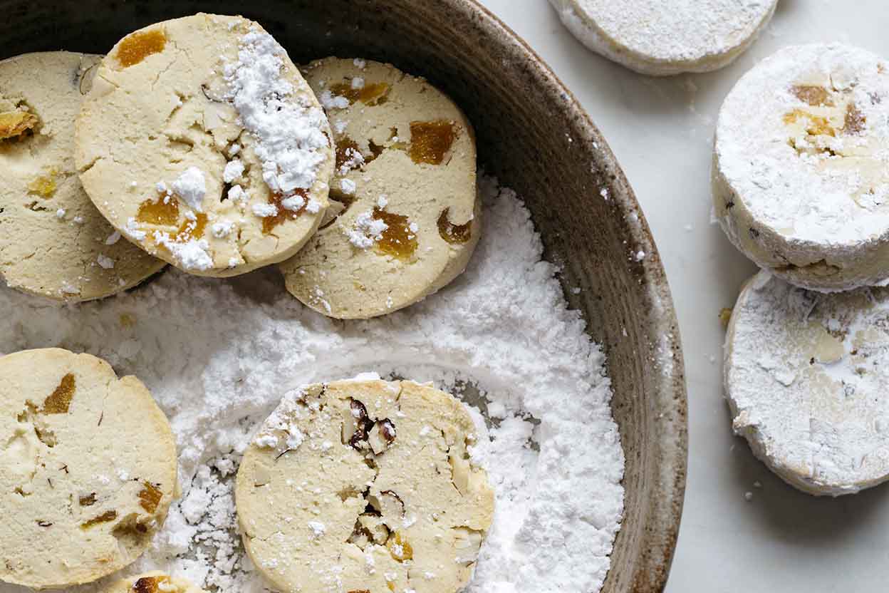 Dusting these tender shortbread-like cookies in confectioners' sugar while still warm gives them a sweet finish that's easier than mixing up a glaze — and just as tasty!