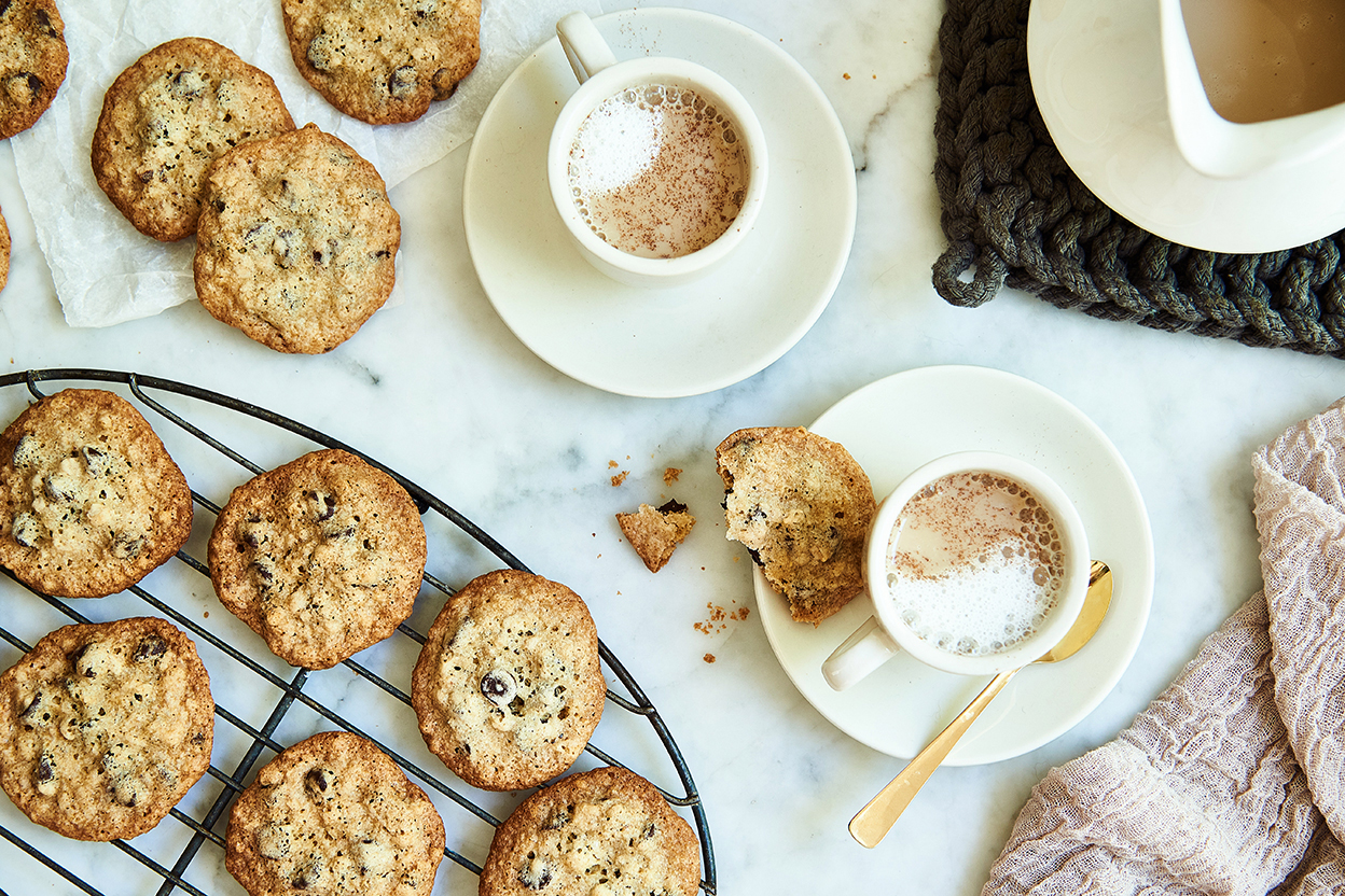 Here it is, a gluten-free version of our 2015 Recipe of the Year. These cookies are tender and mildly chewy, packed with chips, and go beyond the standard chocolate chip cookie with the addition of nutty tasting oats.