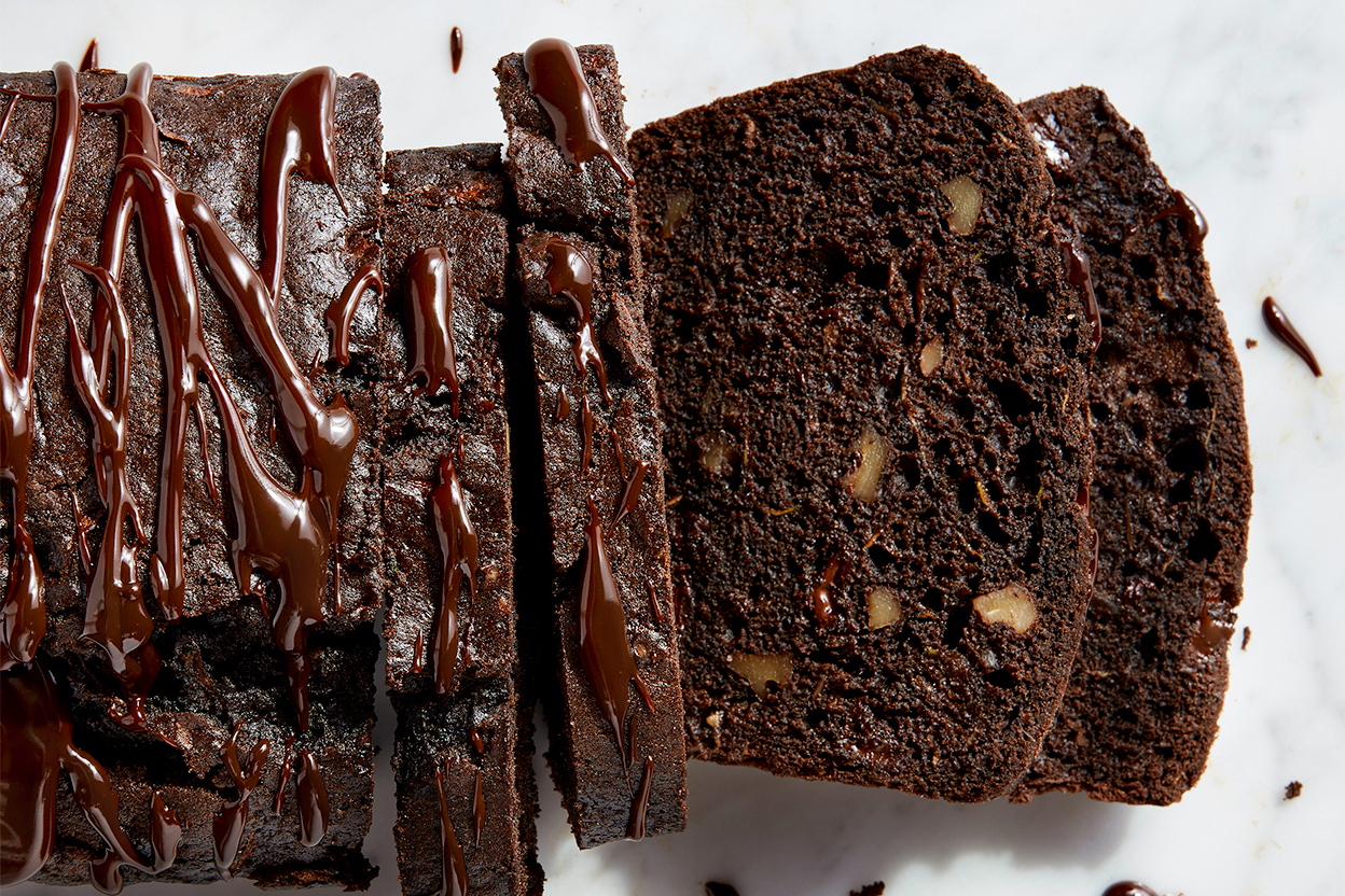 Deeply chocolate and packed with shredded zucchini this bread, made from our gluten-free muffin mix, is an indulgence you can feel good about. A drizzle of melted chocolate on top dresses things up nicely.