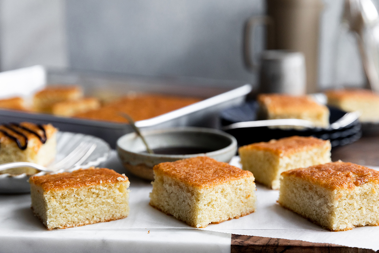 This cake is everything you'd want in a golden yellow cake: soft, moist texture, a tender crumb, and rich flavor with accents of both butter and vanilla. Perfect for frosting, it's also happy simply served with ice cream and a scatter of sweet berries.