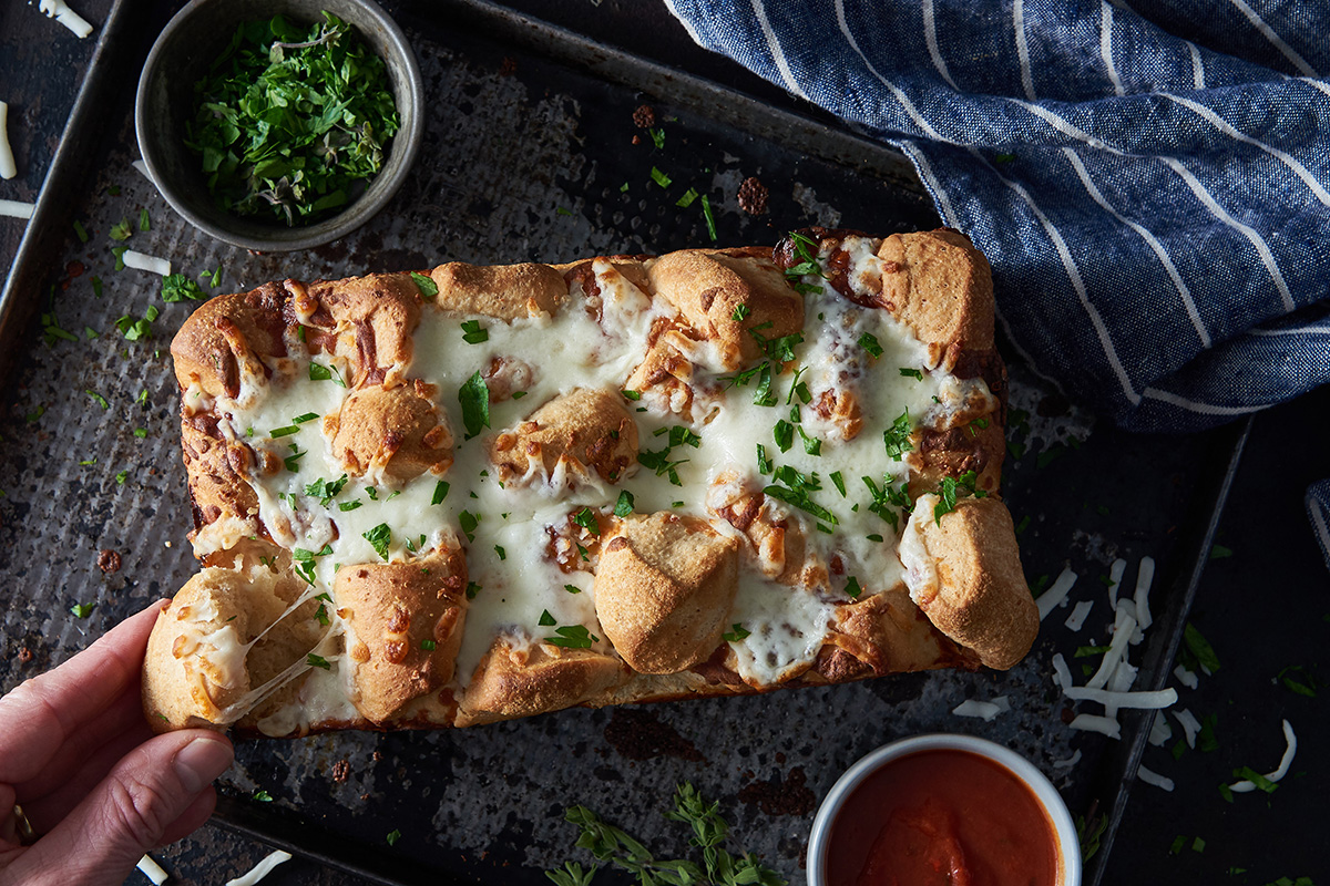 This pull-apart bread includes whole wheat flour to add a bit of character and nutrition to the loaf. Melted cheddar cheese, laced throughout and on top, makes it super-tempting — and a great party dish!