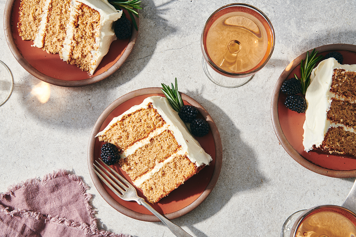 For a show-stopping dessert, we bring you this tall, elegant, whole-grain spice cake. Finished with a layer of White Chocolate Cream Cheese Frosting, it's delightfully decadent. With its hint of holiday spice and a subtle tang from the boiled cider, even your most discerning guests are sure to be impressed.