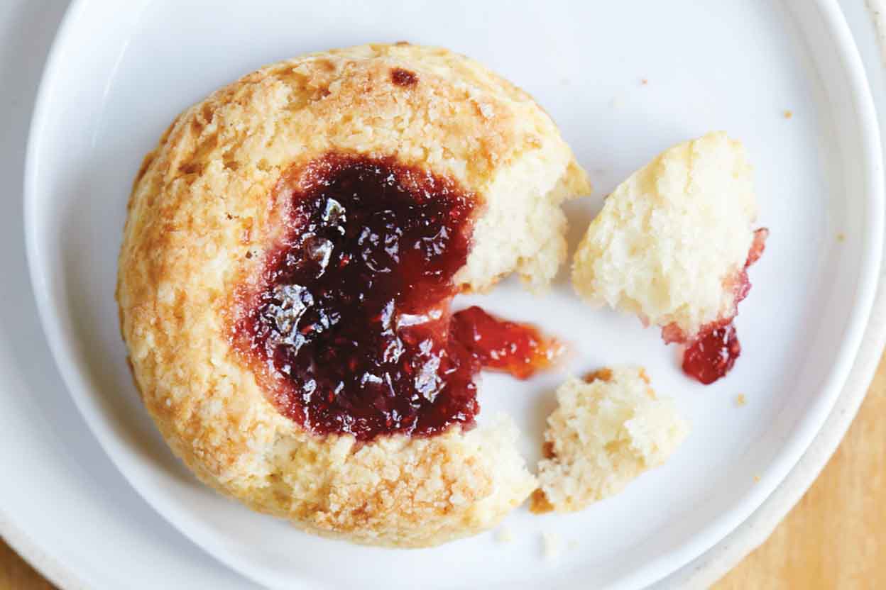 Patrons of Grand Central Bakery in Portland, Oregon, have the luxury of buying these fresh, buttery biscuits with their signature pool of jam baked inside. We've adapted the bakery's published version so you can re-create them at home.