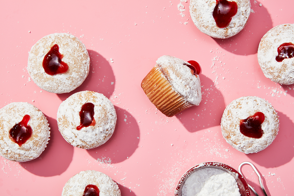 Nutmeg and cake flour are the star ingredients of these aromatic, tender cupcakes. After baking, they’re brushed with butter, dredged in confectioners' sugar, then filled with a tempting center of sweet jam for a cupcake version of this doughnut shop favorite.
