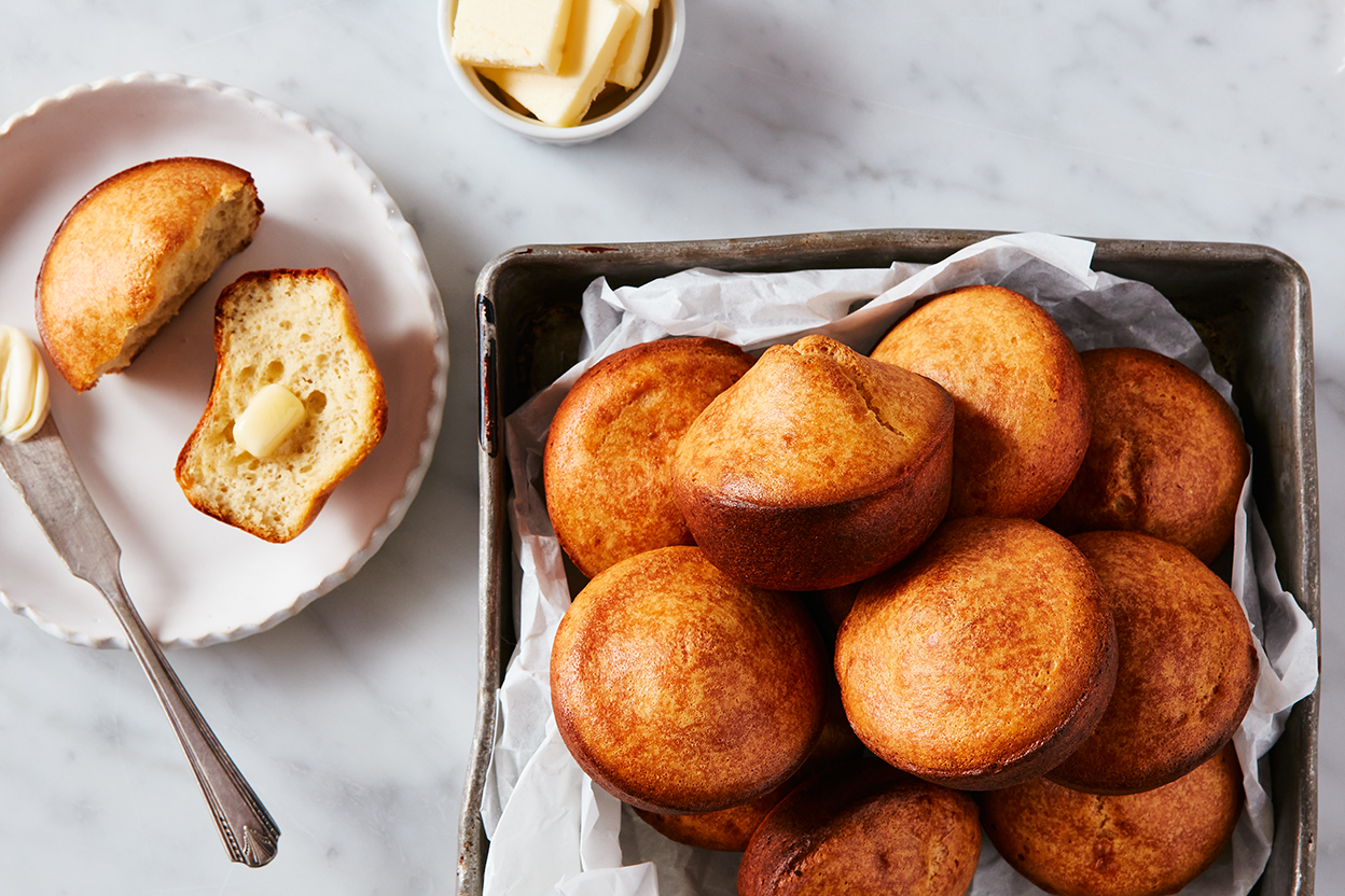 With just 2g of net carbs per serving, these popovers are likely to become a repeat favorite for those on a keto diet. They’re everything a popover should be: light, crisp, and buttery, plus quick to prepare. We’re thankful to Carolyn Ketchum — the writer and recipe developer behind the “All Day I Dream About Food” blog — for introducing them to us; we’ll take a cue from her and add herbs to our next batch!