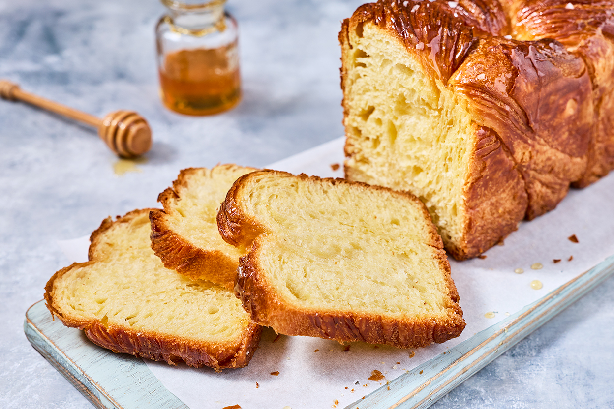 To bake: Place the pan on a parchment-lined baking sheet. Brush the loaf with the beaten egg white, avoiding the exposed layers.