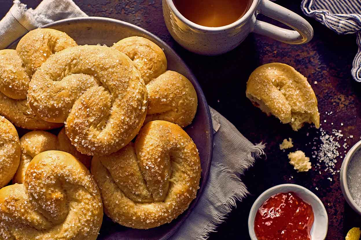 Tender and buttery, with a crunchy sugar crust, these yeasted buns deliver an unexpected and refreshing jolt of citrus. The citrus essence elevates them beyond ordinary dinner rolls to something special: tea or breakfast rolls, perfect for spreading with homemade preserves (we recommend raspberry highly).