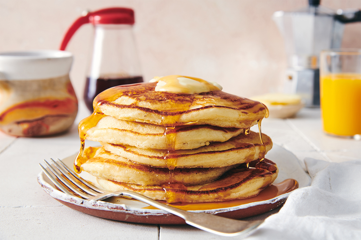 These quick and delicious homemade pancakes with self-rising flour are a cinch to pull off on a weekday morning. The convenience of self-rising flour allows you to get them on the table in 10 minutes or less, and you won't sacrifice flavor or texture either. The pancakes are fork-tender, light, fluffy, and complete with a drizzle of maple syrup.