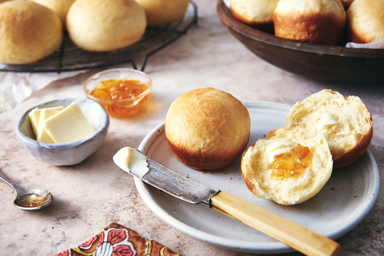Serve rolls with butter and jam, at breakfast or brunch; or as part of an afternoon "high tea."