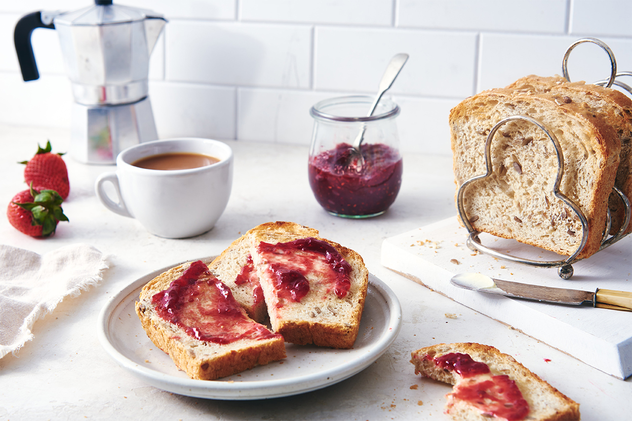 Crunchy and nutty from the seeds and grains, this bread makes a great sandwich, and super toast.