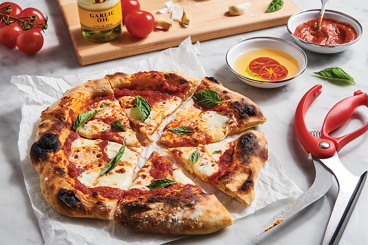 Storage information: This Neapolitan-style pizza is best enjoyed fresh from the oven but can be stored, covered, in the refrigerator for up to 3 days. Slices can be reheated in a 300°F oven for 5 to 10 minutes or until warm.