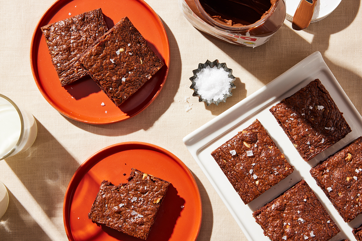 There are many versions of the beloved three-ingredient Nutella brownies, but ours does more to amplify the chocolatey, nutty flavors. It includes a dash of espresso powder to balance the sweetness; toasted, finely chopped hazelnuts for crunch; and two types of salt (table salt in the batter and flaky salt sprinkled on top) to round out all the flavors. If you have a jar of Nutella and one hour, treat yourself and make this recipe.