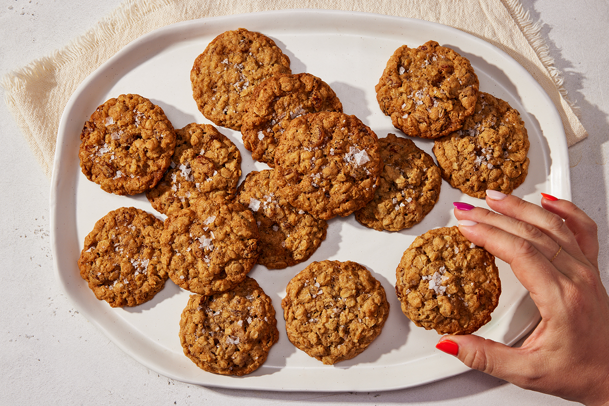 Oats are the star of these oatmeal cookies, and rightly so. Featuring the nutty taste and nubbly texture of oats, these mildly spiced oatmeal cookies are crunchy around the edges and invitingly soft in the center. Plus there's a touch of a surprising ingredient, vinegar, to cut the sweetness and give your baking soda a boost!