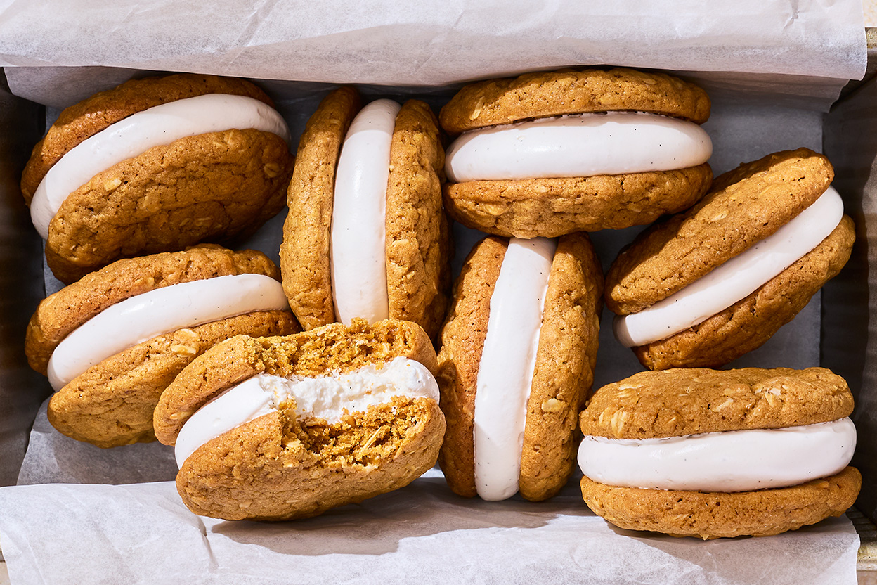 While oatmeal cream pies are typically filled with a creamy frosting, this version takes the classic sandwich cookie to the next level with a homemade marshmallow filling. Sweet and very vanilla-forward, with the ideal amount of marshmallow bounce, it’s the perfect complement to the soft oatmeal cookies. Making marshmallows at home is a project, but the cookies, which start with melted butter, are simple to put together. Plus, you’ll be left with a small batch of homemade marshmallows, destined for a delicious cup of hot chocolate.