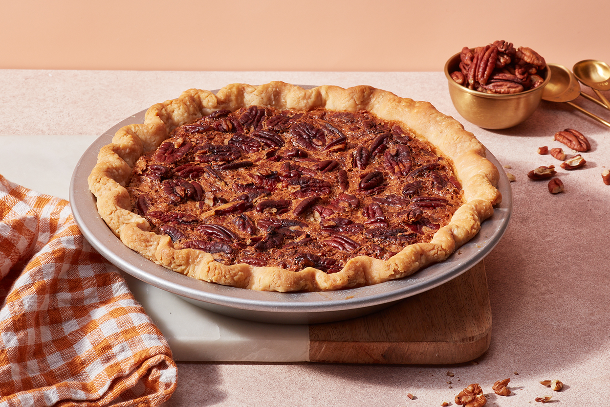 A cherished family recipe from King Arthur employee-owner Liz Pearl, this traditional pie uses no corn syrup. The filling is silky smooth, and the pecans on top toast nicely as the pie bakes, matching the nuttiness of the toasted ones underneath.