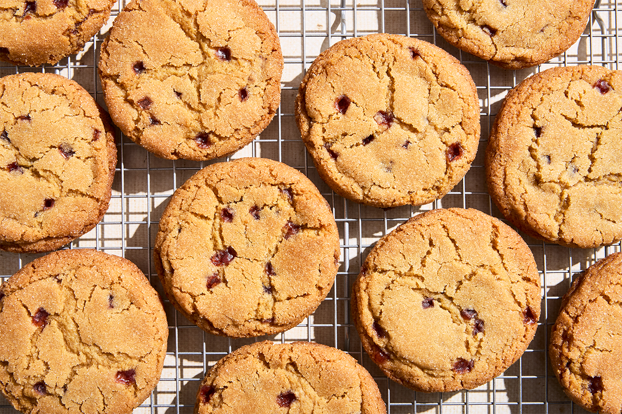 If you consider a PB&J to be one of the world’s great sandwiches, these peanut butter and jelly cookies are for you. Big and crinkly with bendy centers, crisp edges, and a salty-sweet coating, these sandwich-inspired cookies get their jelly flavor from Jammy Bits, little jewels of concentrated fruit flavor that stay suspended throughout the cookies in a way proper jam never could. Once you’ve secured your bag of Jammy Bits, these peanut butter and jelly cookies come together easily — no special equipment or softened butter required — which means you’ll be tucking them into lunchboxes in no time.