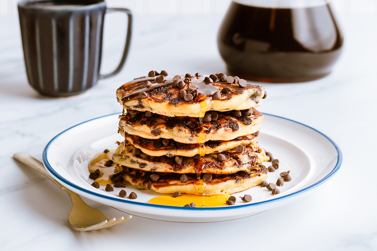 What's your favorite pancake house pancake? Chocolate chip? Butter-pecan? Strawberry-banana? How about "plain" blueberry? Pancakes are a wonderful launching pad for favorite your breakfast fantasies. It's easy to make a basic batter, then either stir in your favorite enhancements or sprinkle them on top as the cakes bake. We particularly love diced crystallized ginger; toasted coconut; and chips of all flavors (cinnamon, chocolate, cappuccino...)