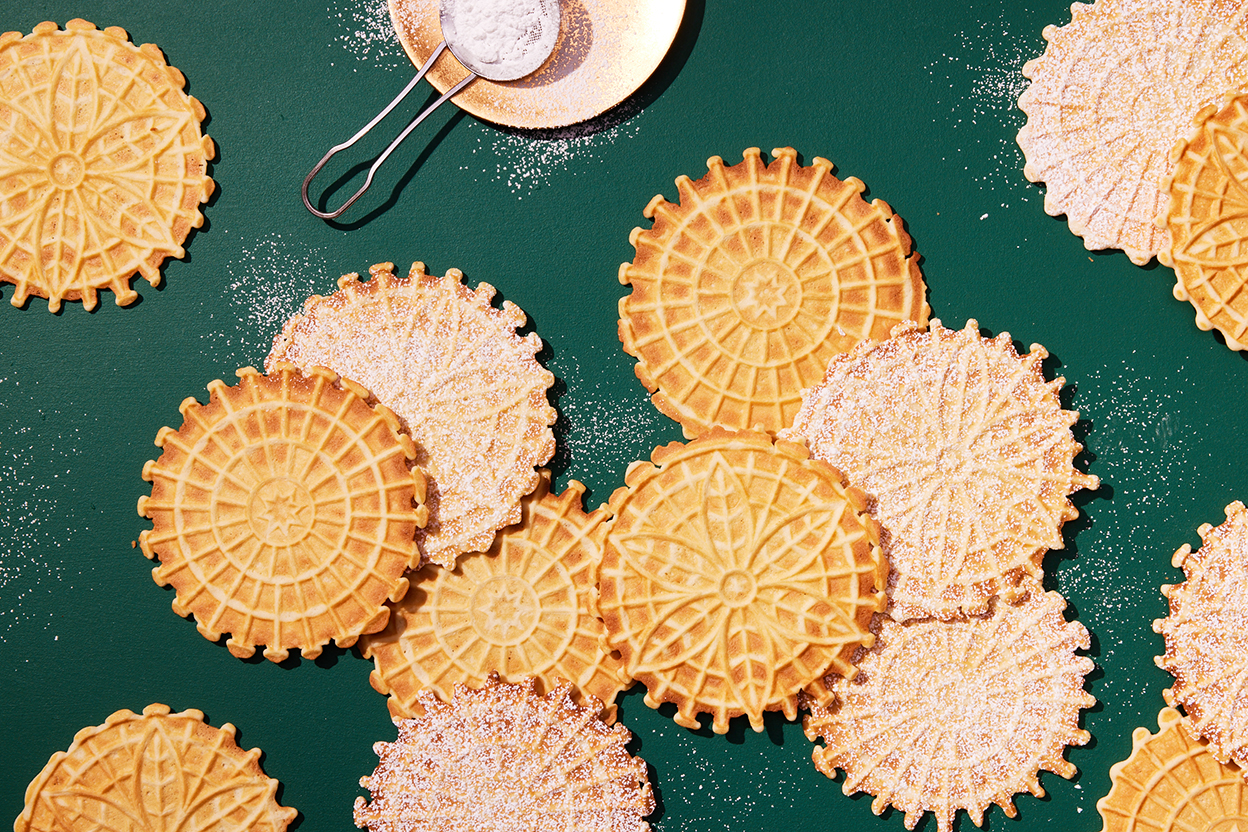 Crisp, buttery pizzelle are quintessential Italian Christmas cookies. We've made them a bit more neutral with a splash of good quality vanilla, but you can always use the more traditional anise extract or seed if that's what you prefer.