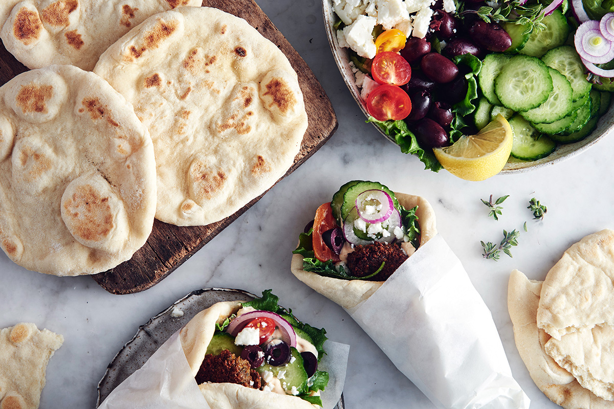 With the help of a little baking powder, these yeasted flatbreads are ready to enjoy in just over an hour. Thicker and chewier than tortillas or pitas, they’re a sturdy option for sandwich wraps. They’re also perfect for dipping into olive oil, a soft spread, or sauce as an appetizer or accompaniment to a more elaborate meal. However you choose to enjoy them, know that you won’t have to carve out hours of your day to devote to their preparation.