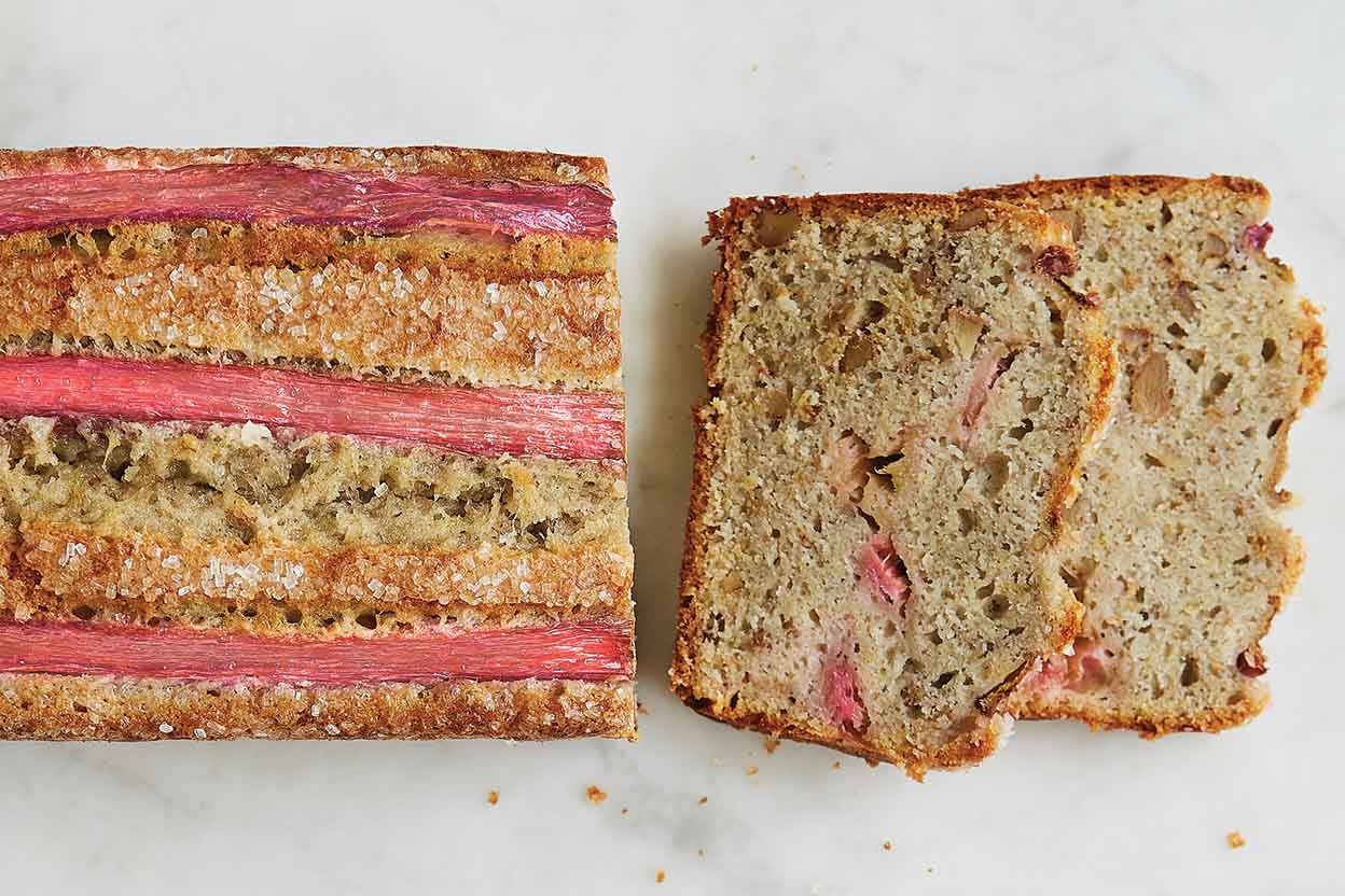 This is a moist quick bread that takes advantage of rhubarb's bright, citrusy flavor; it's excellent with a schmear of cream cheese. The walnuts add a bit of crunch.