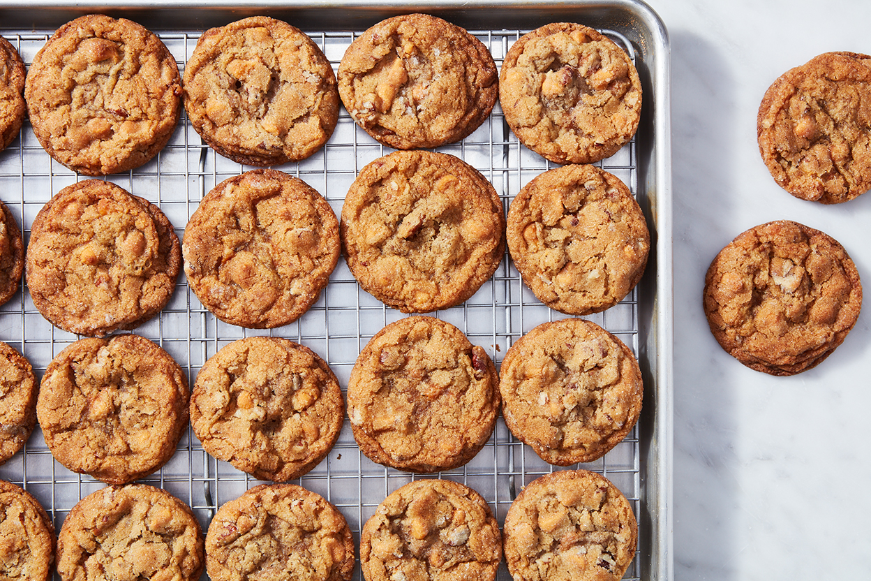 Salt and sugar go together like coffee and cream — each brings the other to new heights. These butterscotch cookies are heavily laced with toasted pecans and butterscotch chips. Love salty/sweet? They're rolled in a mixture of sugar and salt before baking, which gives them over-the-top flavor.