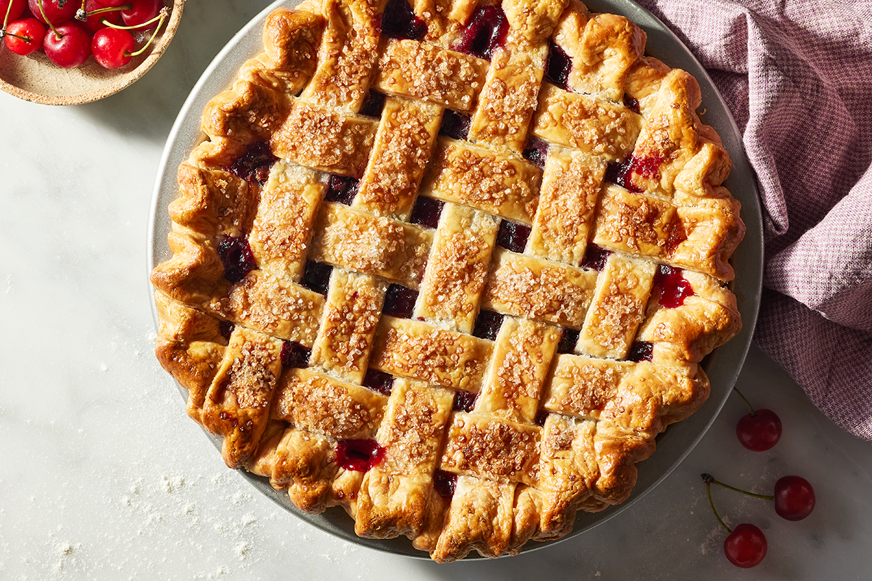Bright, tangy, and wonderfully juicy, sour cherries give this pie a fresh, pleasantly tart flavor that’s a stark contrast to overly sweet cherry pie filling. The ingredient list for this Sour Cherry Pie is refreshingly simple, with just a few thoughtful additions — a splash of almond extract to complement the cherries, and a touch of cinnamon for warmth. For the most classic presentation (and one George Washington, cherry enthusiast that he was, would surely appreciate), top it with a golden, crisscrossed lattice crust.