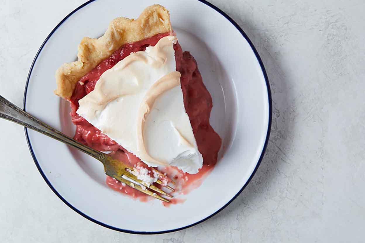 Ripe red strawberries cook into a smooth, creamy filling that intensifies the berries' flavor. Crowned with sweet swirls of toasted meringue, this is a gorgeous pie that's composed of bright layers of flavor.