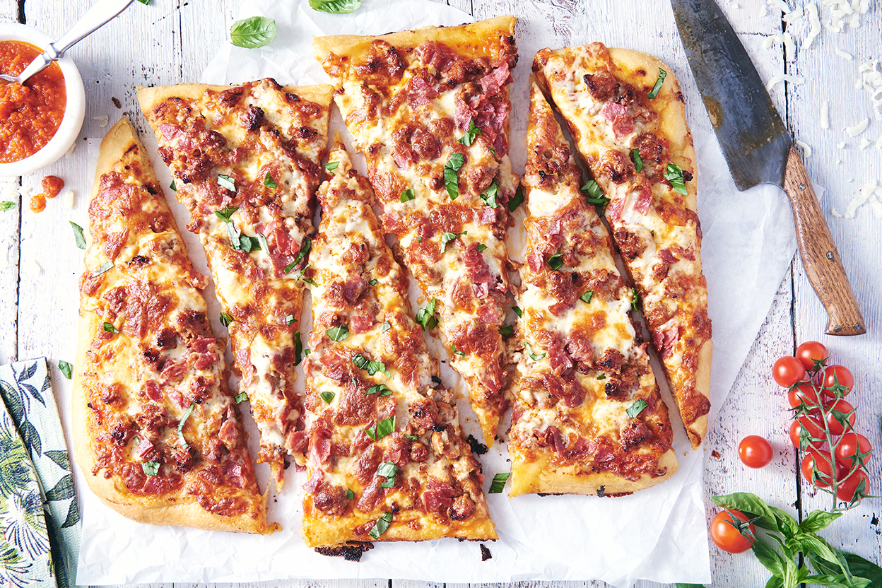 Warning: The following meat-lovers' pizza is neither low-calorie nor low-fat. But when you want to indulge all of your pizza cravings — layer on the sausage and salami! Pile on the cheese! — this is the recipe to grab.