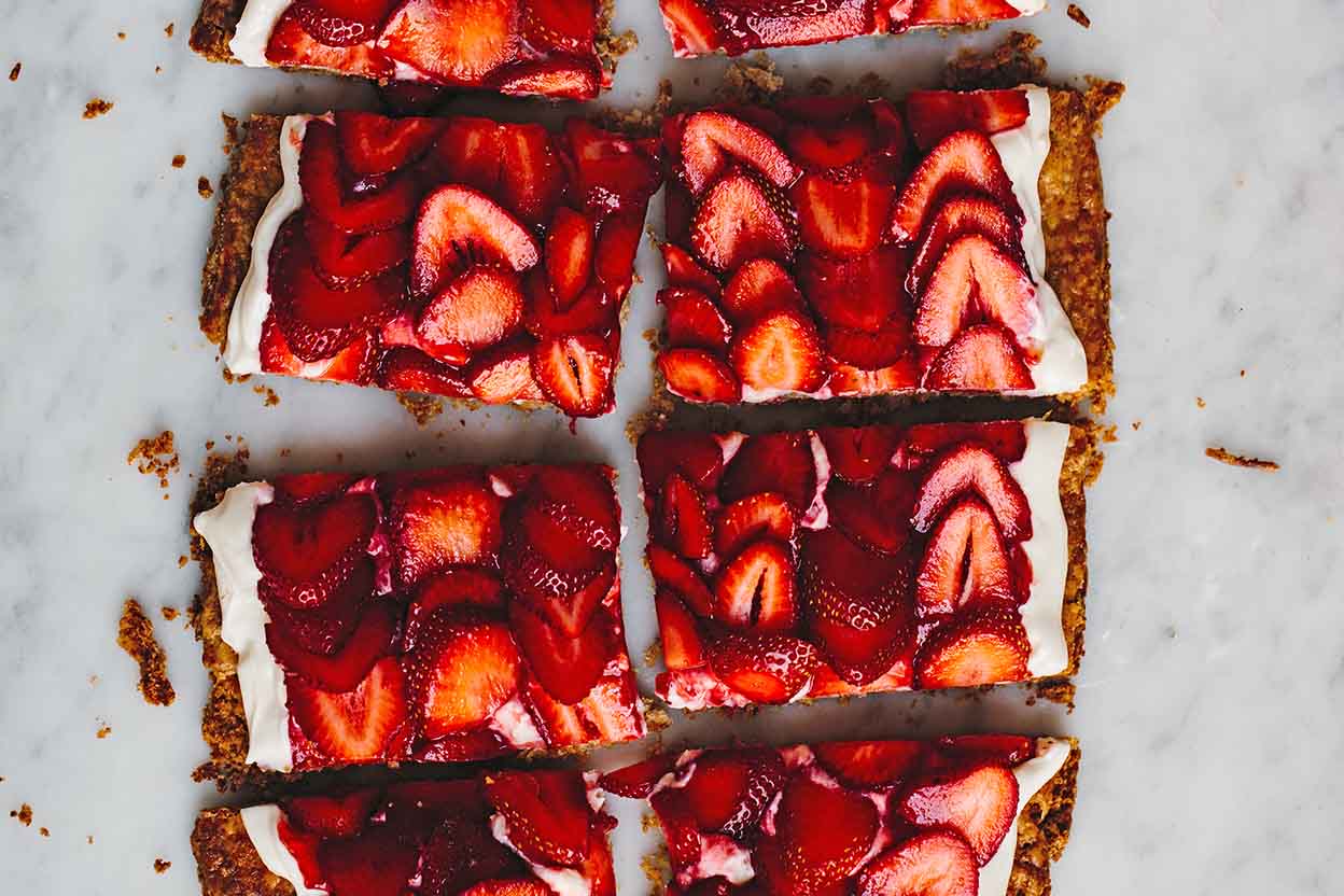 This simple yet super-flavorful strawberry tart came to us courtesy of NYC-based food writer and photographer Yossy Arefi. It's more delicious than the sum of its parts, and the beauty is in the contrasting textures of crisp rye crust, creamy mascarpone, and juicy strawberries. Assemble the tart just before you serve it so the crust doesn't get soggy.