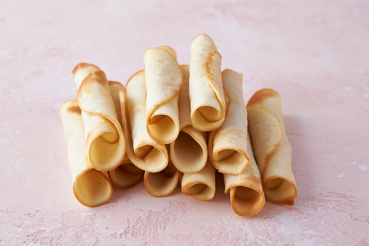 Thin as a whisper, tuiles are delicate cookies that can be wrapped and molded while warm to form cups, tubes, mini bowls and even flowers. Filled with pastry cream, mousse, berries or sweetened cream, tuiles make a very elegant dessert for special occasions.