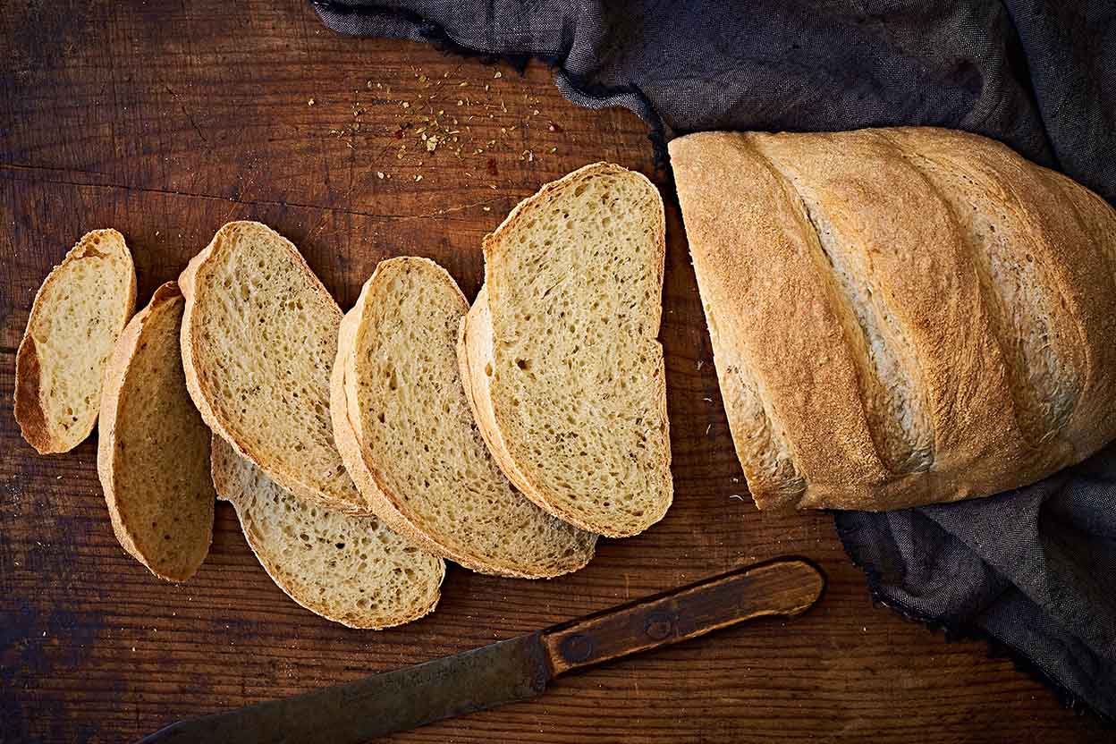 A light and airy loaf, redolent of herbs (we like a mixture of rosemary, marjoram, and oregano), this is a perfect bread to make for slicing for sandwiches or toasting with soup.