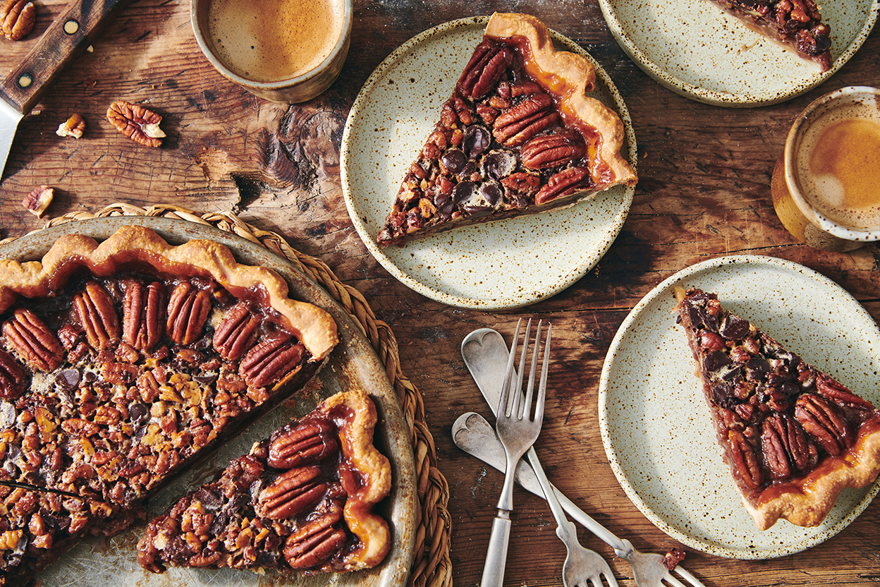 This ooey-gooey vegan pecan pie has everything you wish for in a nut pie — tons of toasty pecans bound together in a rich, sweet syrup and cradled in a flaky crust — but without any eggs or dairy. Instead, cornstarch functions as the egg-like binder and coconut cream plays the role of butter. If you don’t tell your guests this is vegan, no one will ever know (but the vegans will thank you!).