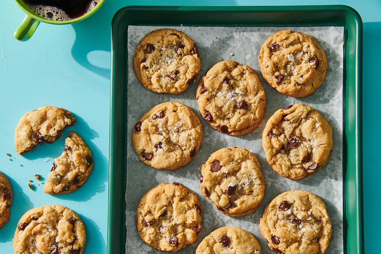 Just before the cookies go into the oven, sprinkle them with flaky sea salt. Bake for 12 to 13 minutes, or until the edges are just golden. Be careful not to overbake.
