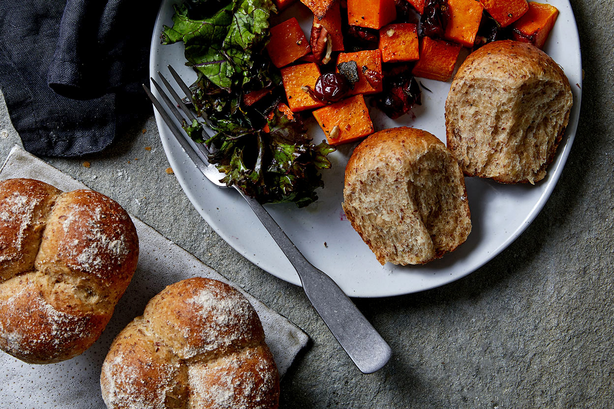 Whole wheat, oats, and flax give these soft dinner rolls a tweedy texture and a nutty, slightly sweet flavor.