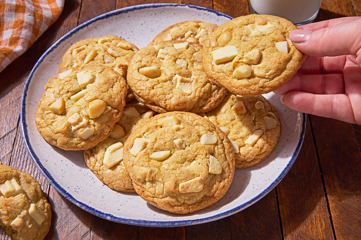 Compared to chocolate chip cookies and snickerdoodles, white chocolate macadamia nut cookies are a recent invention, coming onto the cookie scene only in the 1980s. But they’ve quickly become a classic for a reason: The buttery nuts pair perfectly with the creamy, sweet chocolate. This recipe, which comes together in one bowl, produces tender cookies with crisp edges, bendable centers, and strong vanilla flavor.
