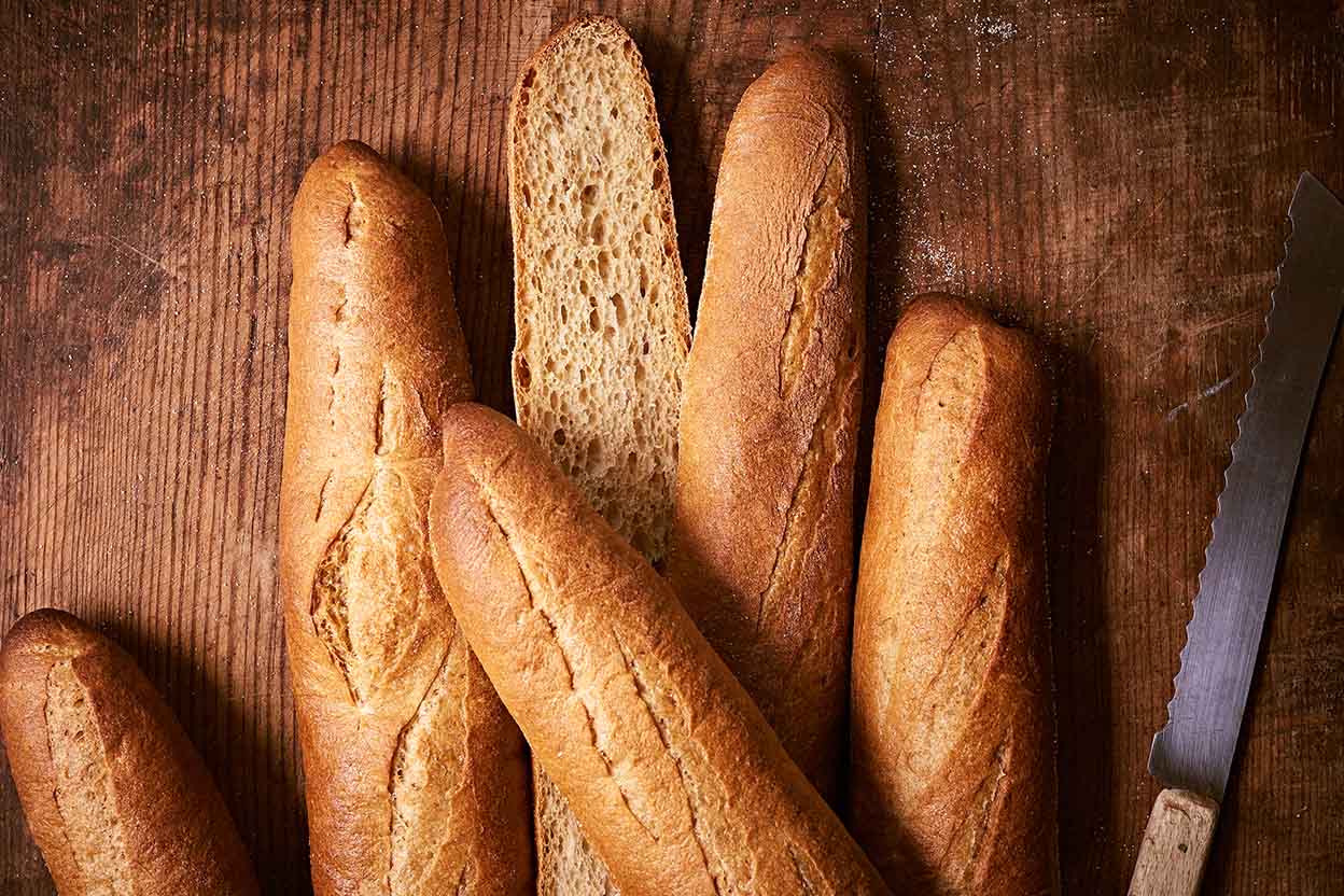 Serve baguettes the same day they're made, if possible. If not, store loosely wrapped (not sealed) in plastic; just before serving, heat in a preheated 350°F oven, tented with foil, until warmed through, about 10 minutes.